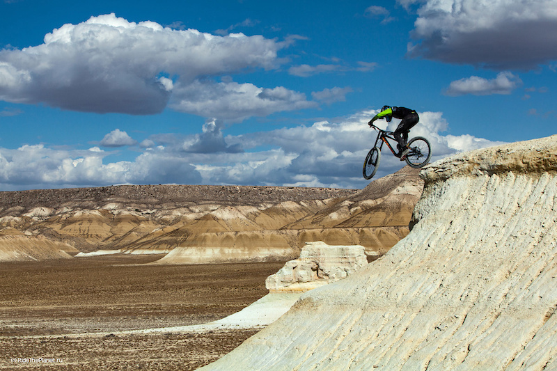 RideThePlanet Project movie. This time our team travelled to Ustyurt plateau in the western deserts of Kazakhstan. We were quite tight on schedule – only 6 days available for shooting, and the most time consuming part was searching and exploring lines, waiting for suitable windows in weather and proper lighting. There was no time for building man-made features. The uniqueness of this location – insufferable bright light – made any filming efforts before 2 PM almost impossible. Daily temperature peaked at 42 C° – that’s September in desert for you!